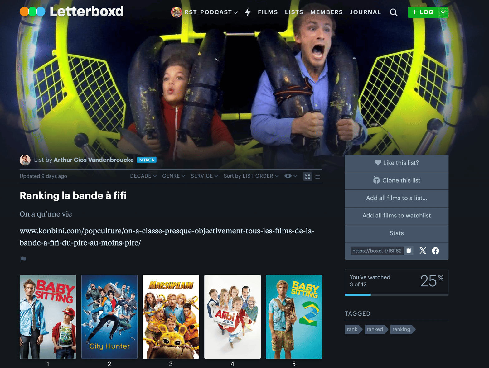 Et sinon, comme toujours, le lien vers notre compte Letterboxd RST est juste ici. Mais la liste n’y sera pas, ça c’est sur le compte d’Arthur, comme vous pouvez l’imaginer…