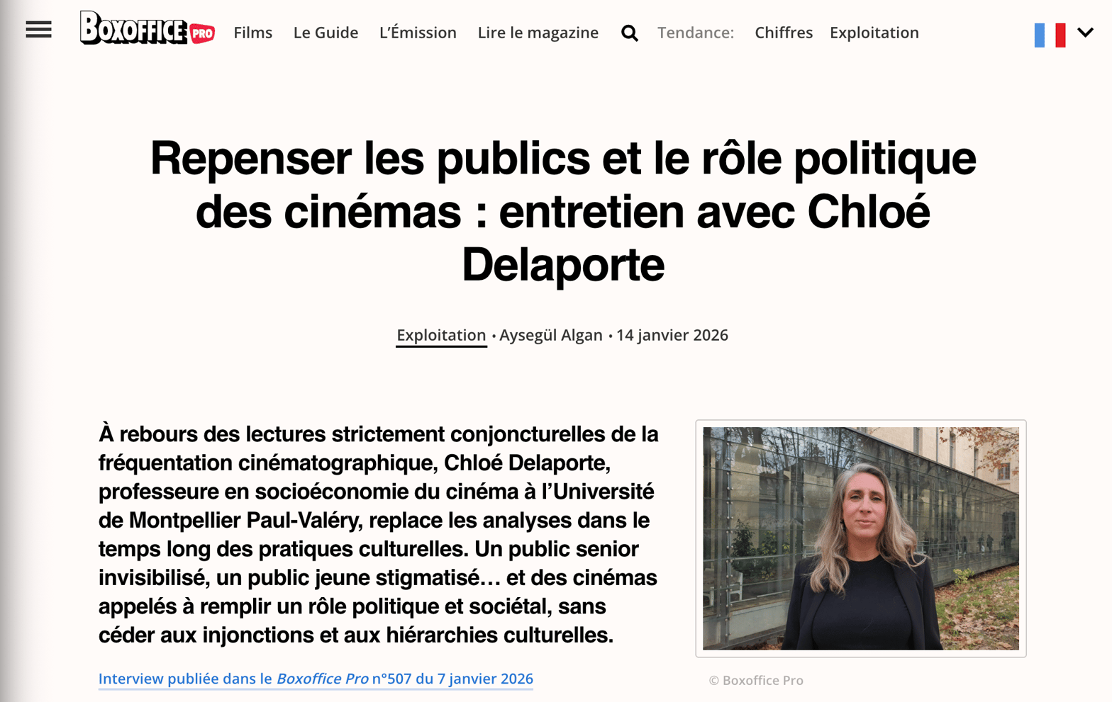 Il s’agit de Chloé Delaporte, professeure en socio-économie du cinéma à l’université de Montpellier Paul-Valery. Elle a donné au site Box-office pro une interview passionnante, découverte grâce à un post de Manuel Alduy. De cette phrase, plusieurs conclusions préliminaires s’imposent. La première, c’est évidemment que vous devriez suivre Manuel Alduy. Pas le suivre dans la rue, à la manière d’un caneton sa maman. Non, et c’est le deuxième volet de cette recommandation, vous seriez bien inspiré de le suivre sur Blue Sky, parce que Blue Sky, c’est comme un réseau social sans le stress, et comme X sans le X.