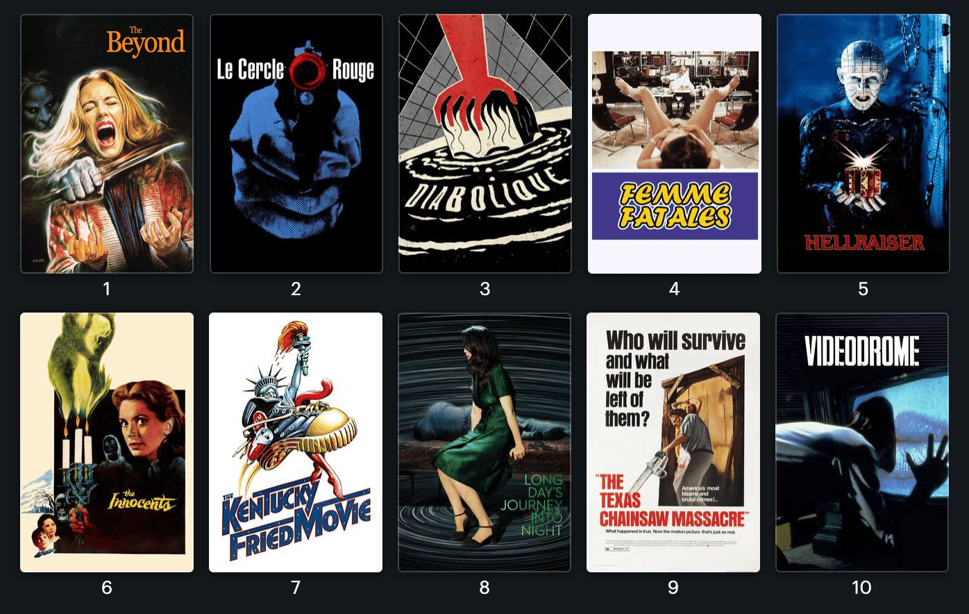 Chaque semaine, on vous concocte un petit bonus. Un truc en plus, à vous mettre sous la dent. Parce qu’on est comme ça, dans le don de soi, pour vous autres abonné•e•s. Et cette semaine, on continue d’explorer la cinéphilie de nos membres de l’équipe. Après le top 10 de Nico, découvrez les dix films chers à notre Simon Riaux. Sans classement.