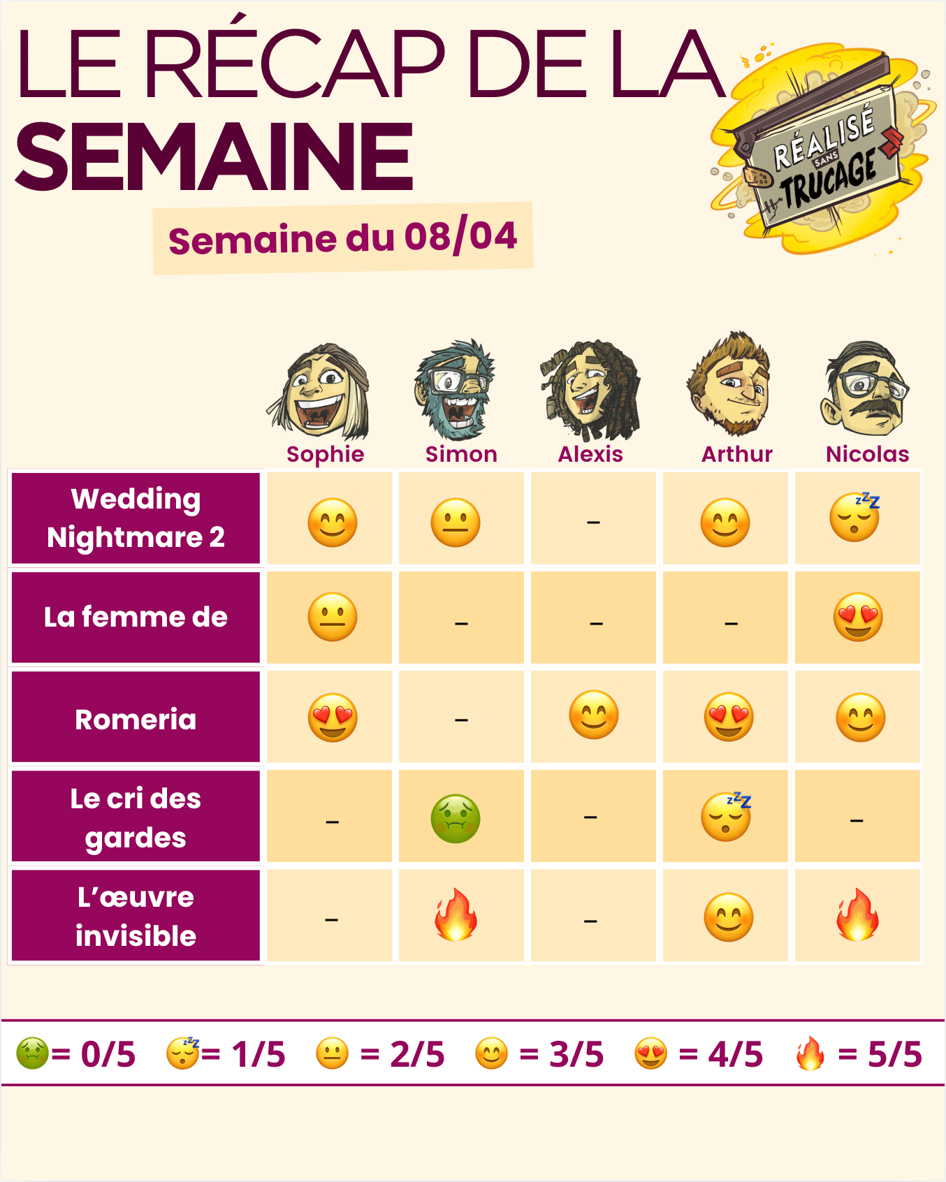 Si ces actus vous intéressent, vous pourrez écouter notre épisode de lundi où on reviendra sur Cannes évidemment, mais aussi sur l’augmentation des pass de cinéma Pathé, de la notion de Trigger Warning pour The Drama, l’énorme bordel du CNC et des aides pour les créateur•rice•s de contenus, et plus encore.