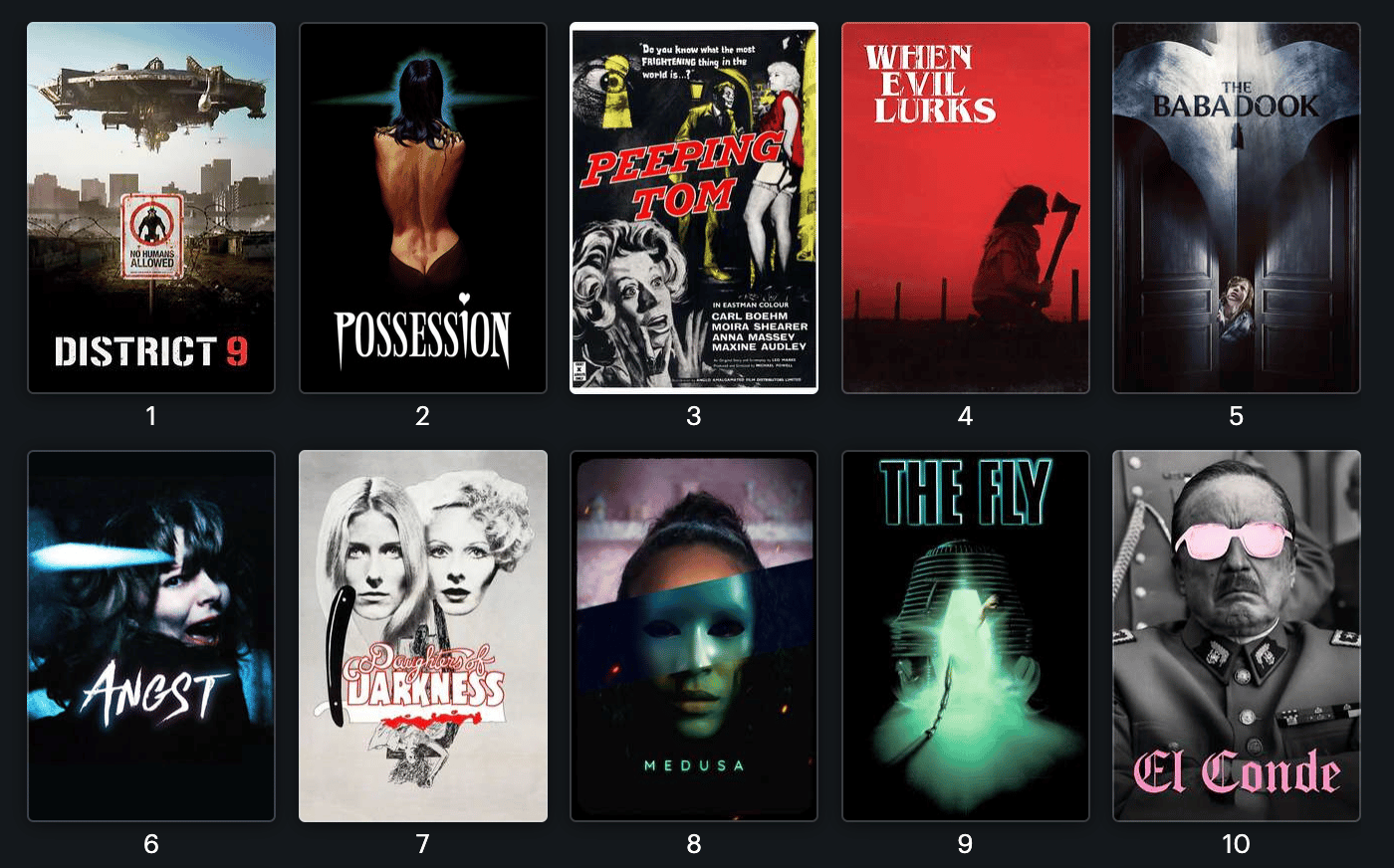 Chaque semaine, on vous concocte un petit bonus. Un truc en plus, à vous mettre sous la dent. Parce qu’on est comme ça, dans le don de soi, pour vous autres abonné•e•s. Et cette semaine, inspiré par la récente vidéo de La Manie du Cinéma déjà évoquée ici, Arthur se replonge dans son giga marathon horrifique d’Halloween dernier pour sortir une autre liste, différente de celles que vous avez l’habitude de trouver en ligne.