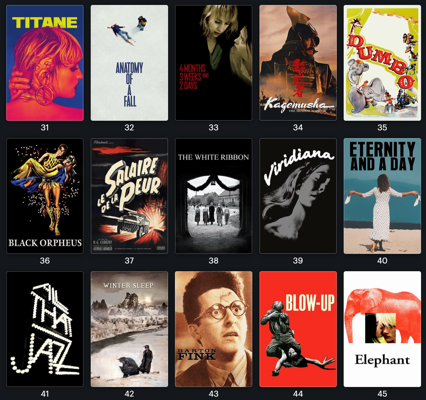 J’ai essayé de faire court, si vous préférez la version Letterboxd, plus visuelle et avec moins de blabla, la liste est disponible juste ici.